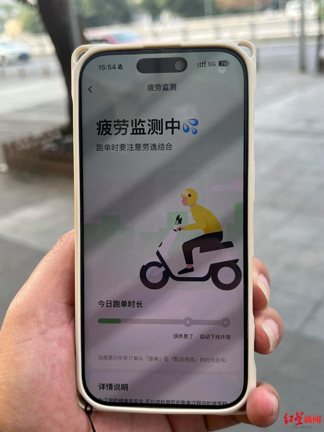 在老冉看来这与实际工作节奏相近,也是可以接受的,现在平台也会提醒他们连续接单了4小时,但不会停止派单。“我们一般跑四五个小时就会休息一下,吃个饭、换电瓶,差不多也是二三十分钟。”