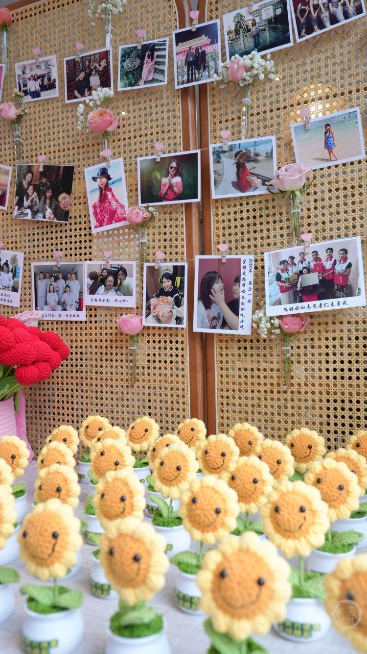 临走前,王欣和同事们给大家准备了毛线织的小小向日葵盆栽。这些向日葵盆栽承载着刘洁的祝福,“愿你们向阳而生,都能活得精彩,笑得灿烂!”