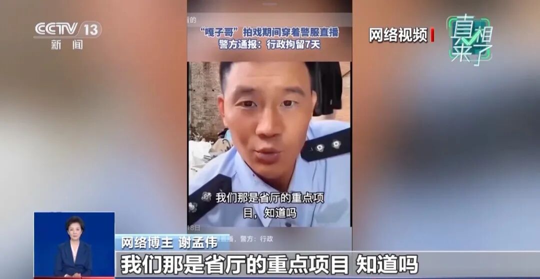 这个身着制式警服进行直播带货的就是谢孟伟,作为一个有一定知名度的演员,今年9月,他在云南拍戏期间,竟然身穿警服直播带货。对于这身警服他是这样向粉丝解释的:“我们那是省厅的重点项目”。