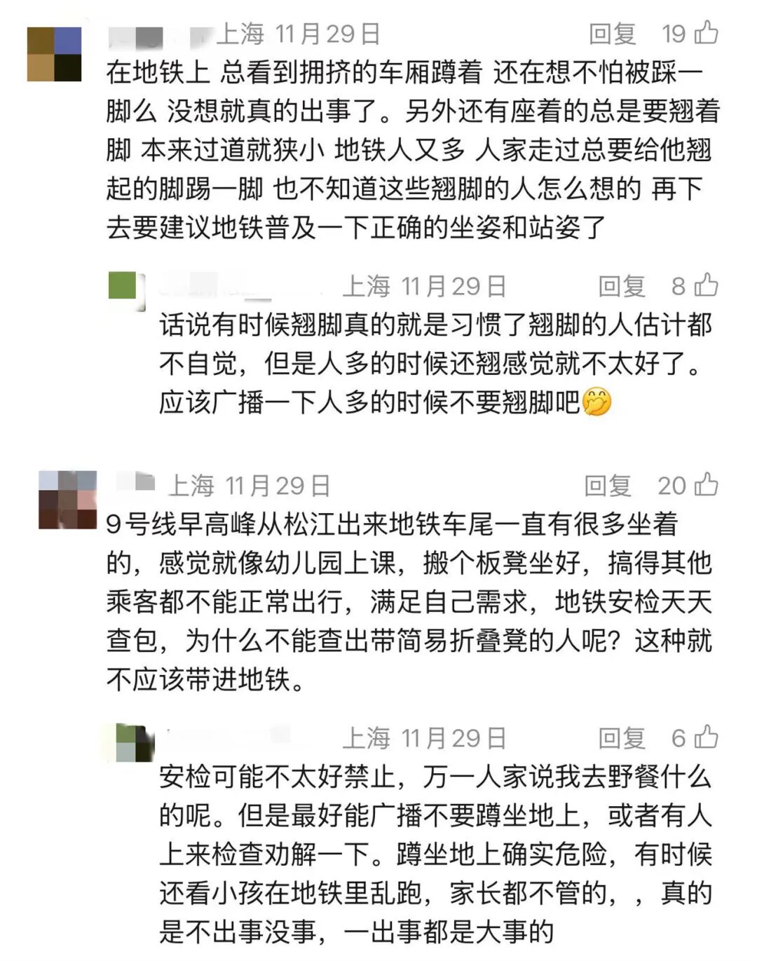 蹲坐乘客:没有,一般我都靠边坐。