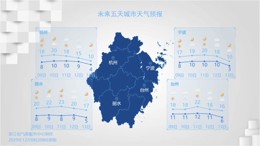 部分城市天气预报。图源:浙江天气