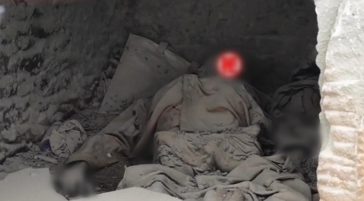 据社交媒体视频,崖壁上有多个洞,其中一个洞中有一具尸体,尸体旁边有塑料水瓶、衣服。