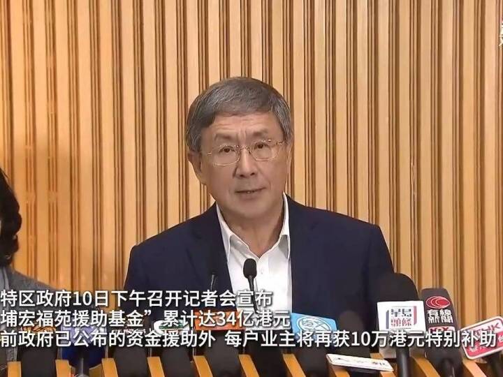 同日下午,香港特区政府召开记者会宣布,“大埔宏福苑援助基金”累计达34亿港元,除此前政府已公布的资金援助外,每户业主将再获10万港元特别补助。