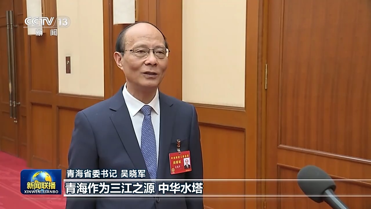 青海省委书记 吴晓军:青海作为三江之源、中华水塔,我们将坚决扛牢政治责任,牢固树立“绿水青山就是金山银山”的理念,坚定不移走生态优先、绿色发展之路,建设好三江源、祁连山、青海湖等国家公园,加强普惠性、基础性、兜底性的民生建设,让各族群众有更多的获得感、幸福感,推进中华民族共同体建设,在共同奋斗之中共享现代化的建设成果。
