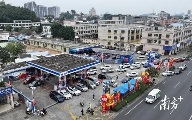 江门江海美孚加油站搞促销,前来加油的市民络绎不绝。南方+ 杨兴乐 拍摄