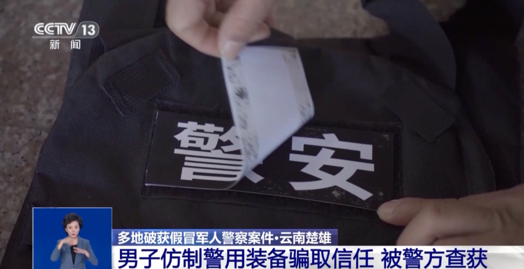 楚雄市公安局东城派出所 副所长 杨磊:他在网上买了一些安保装备,然后又到线下通过各种渠道,做了一些警察字样、标识,贴到这些安保装备上面,让群众无法分辨他这些装备是真正的人民警察佩戴的制式装备,还是普通的安保人员所使用的装备。