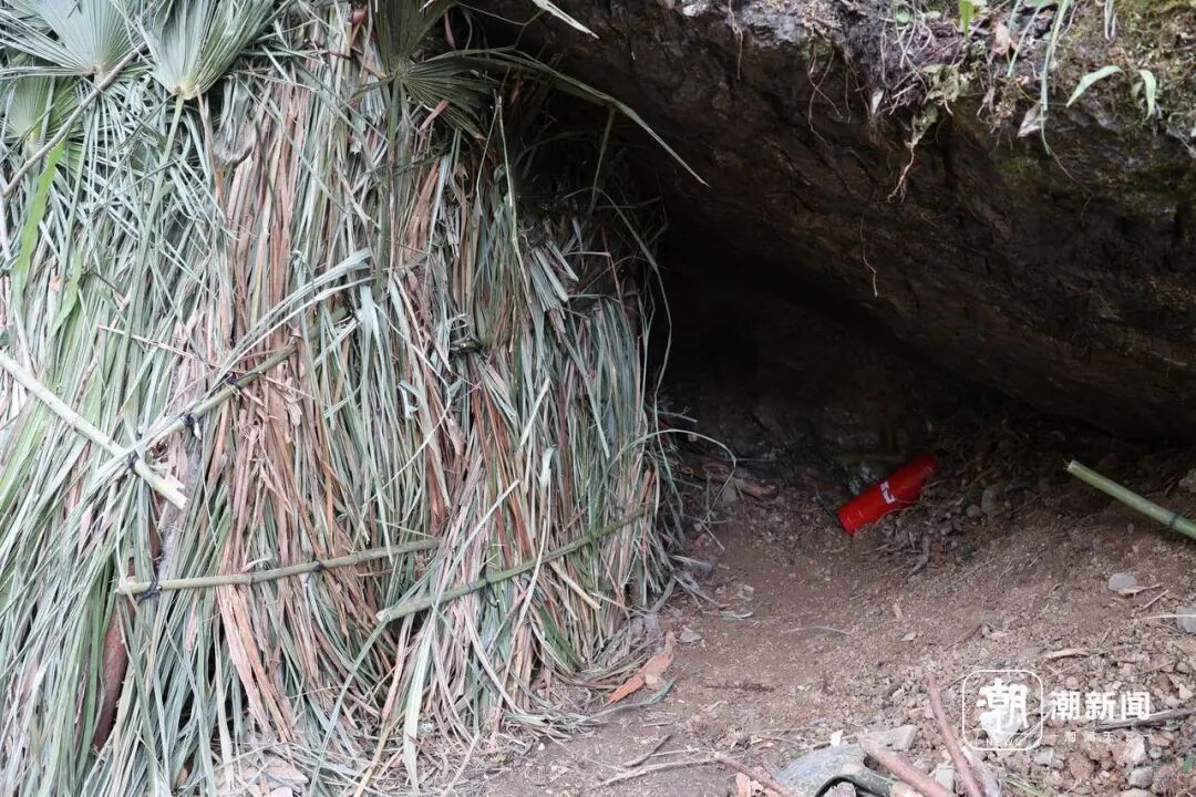 选手“苗王”的庇护所在山坳的最前面,这里被其他的选手戏称为“前台”。记者来到时,他正在庇护所内休息,身体似乎有点疲惫,不愿与人多说话。网友们都称赞“苗王”很有“荒野求生”经验且动手能力较强,他的庇护所巧妙利用了一个山洞,外面用棕榈叶覆盖,里面还有通风的“壁炉”。走进去虽然光线不好,却很暖和。