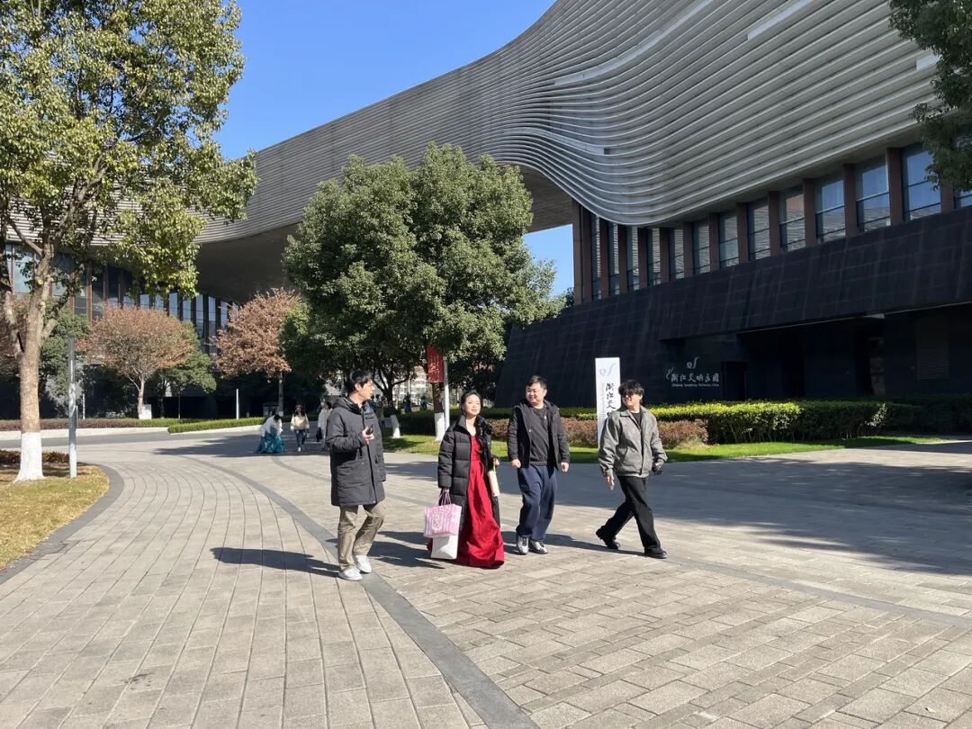 昨天气温很低,但天气晴好,浙江音乐学院校园里的湖边,零散地坐着几位等待的家长,而“大部队”都在附中楼的考场出口等候。