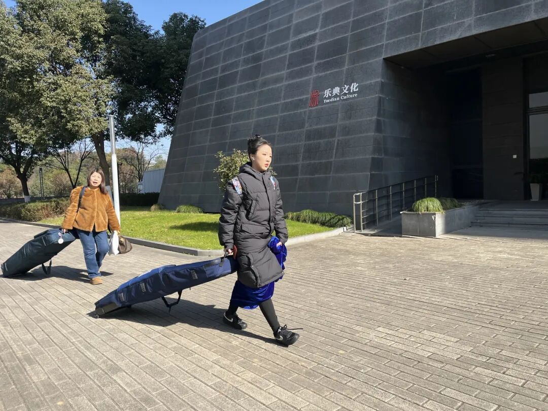 对于学习大件乐器的考生家长而言,备考之路更为辛苦。记者在琴房见到的温州考生小王,身着黄色演出裙装,外搭羽绒服,手上还小心翼翼地戴着保暖手套。她学的是古筝,天气寒冷需格外保护双手,而她的两架古筝则由爸爸妈妈分别搬运。