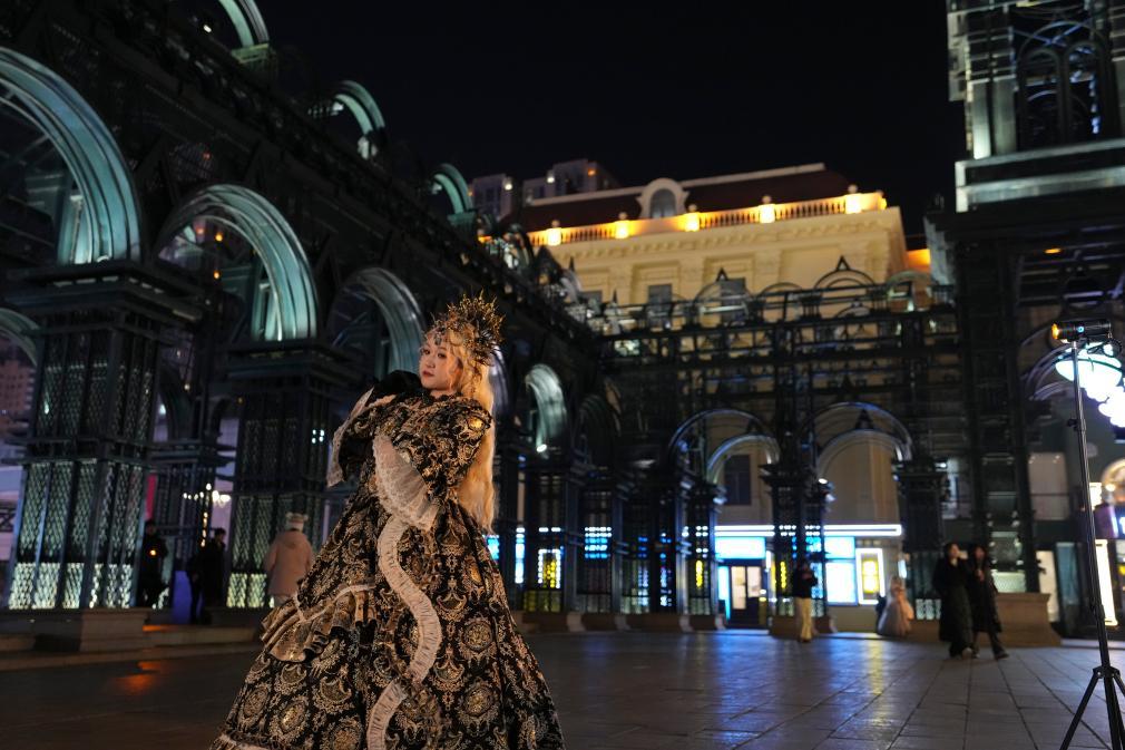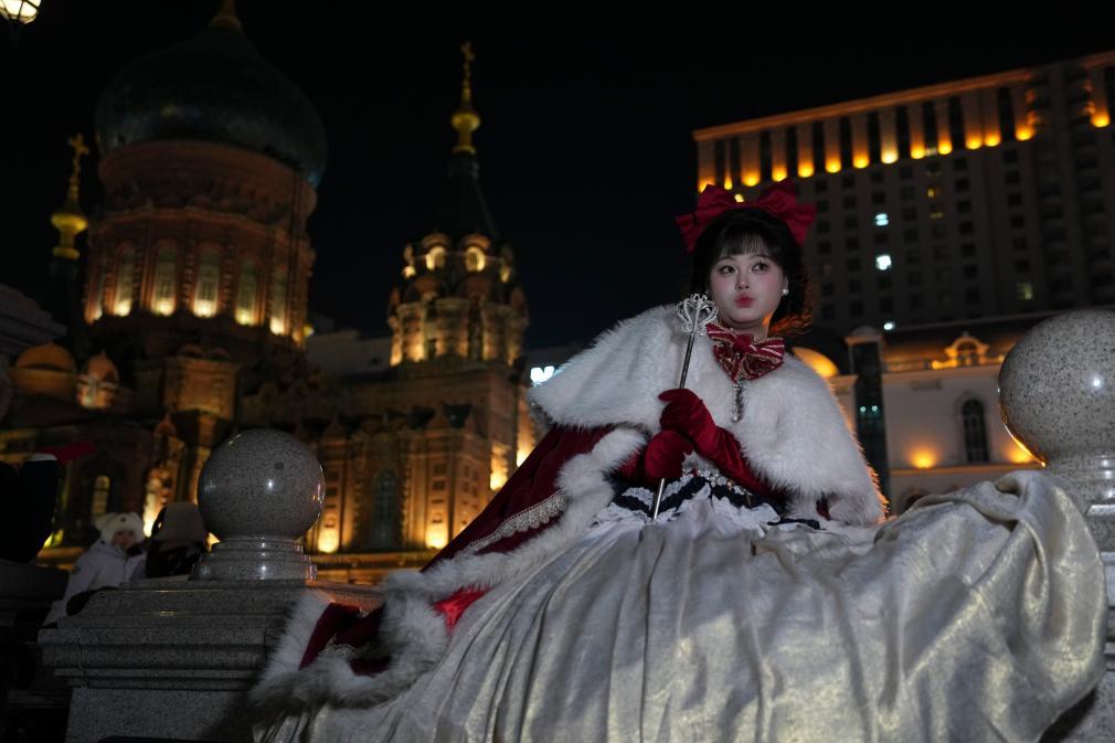 在冬日的哈尔滨建筑艺术广场,随处可见盛装的人们在这里打卡拍照,体验寒冬里的浪漫。