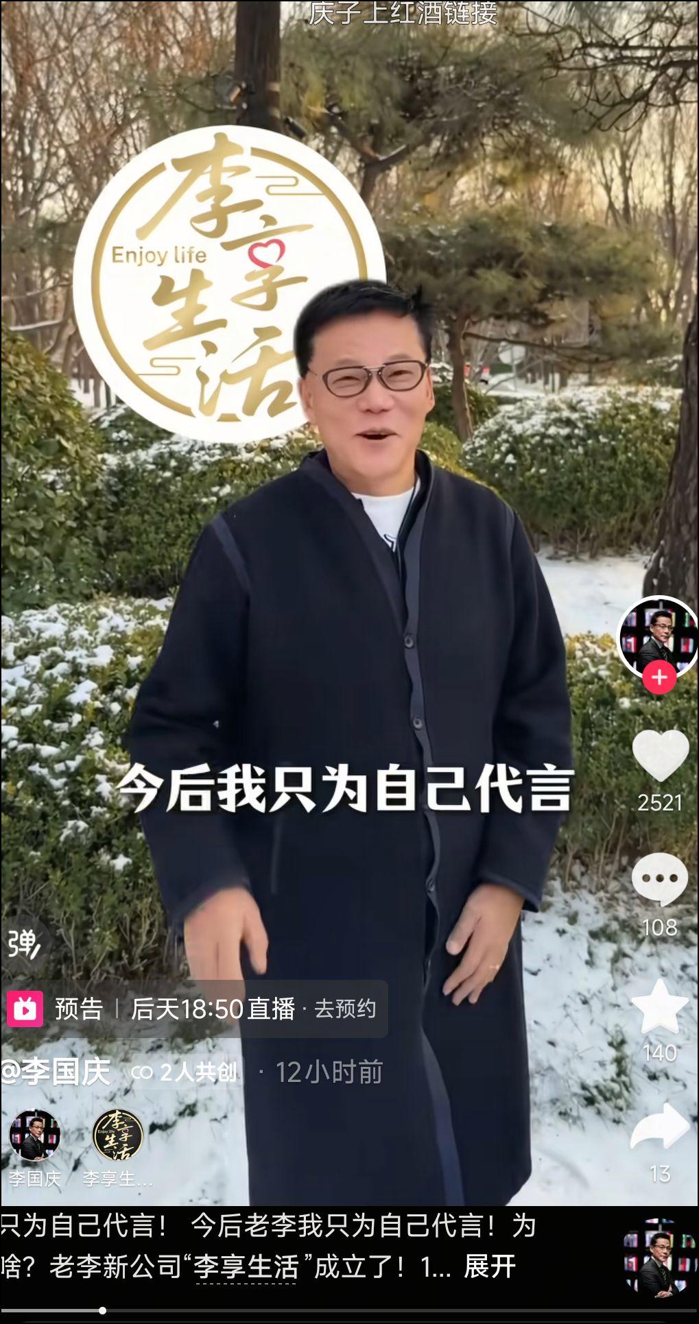 12月15日,李国庆通过其社交媒体账号发布视频称,“要带着30年练就的火眼金睛,重回电商一线,打造'李享生活'品牌。”