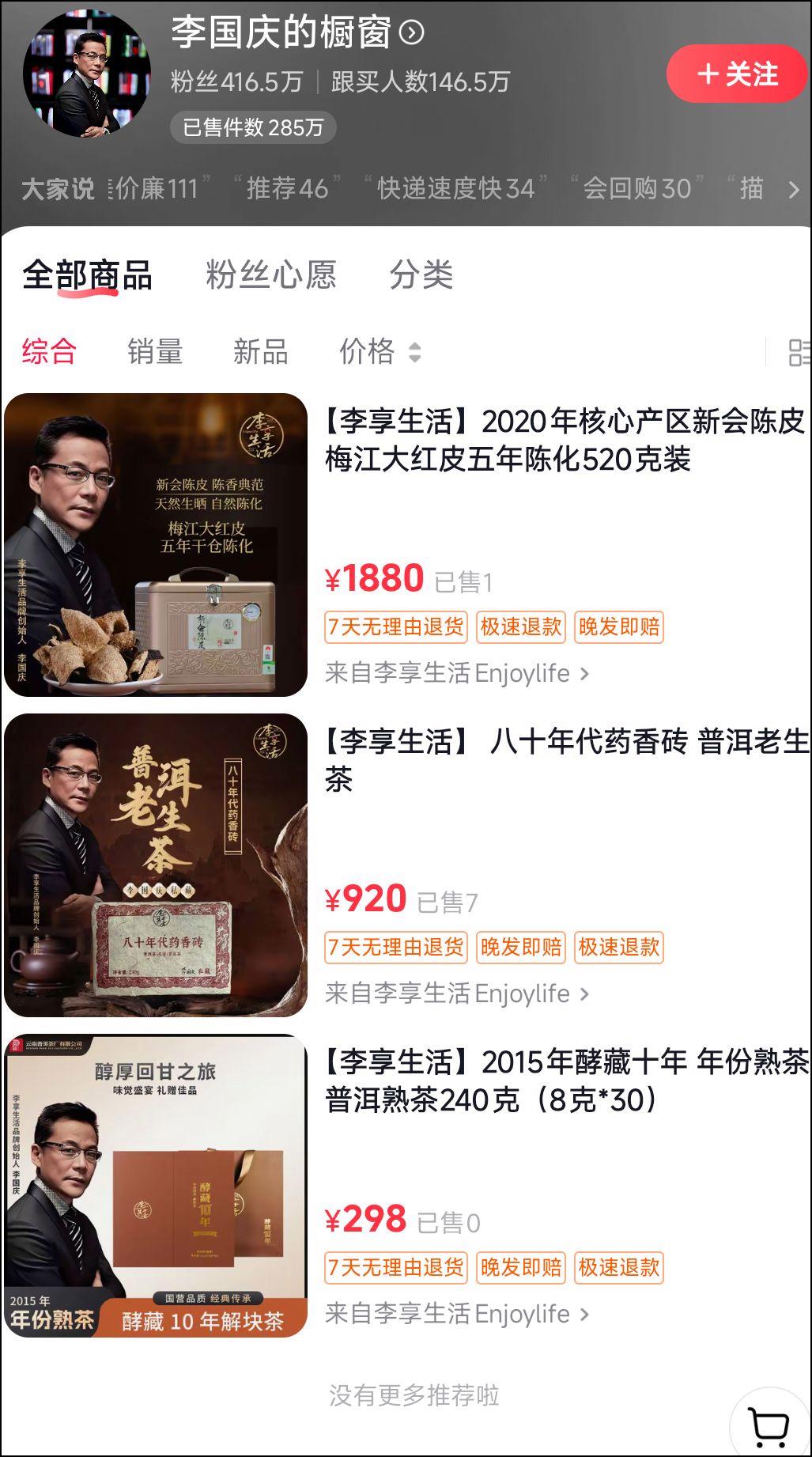 李国庆的个人抖音账号橱窗也同步上架了三款“李享生活”商品。他此前专注于酒水等直播带货,其个人账号橱窗相关商品销量累计已超过285万件。