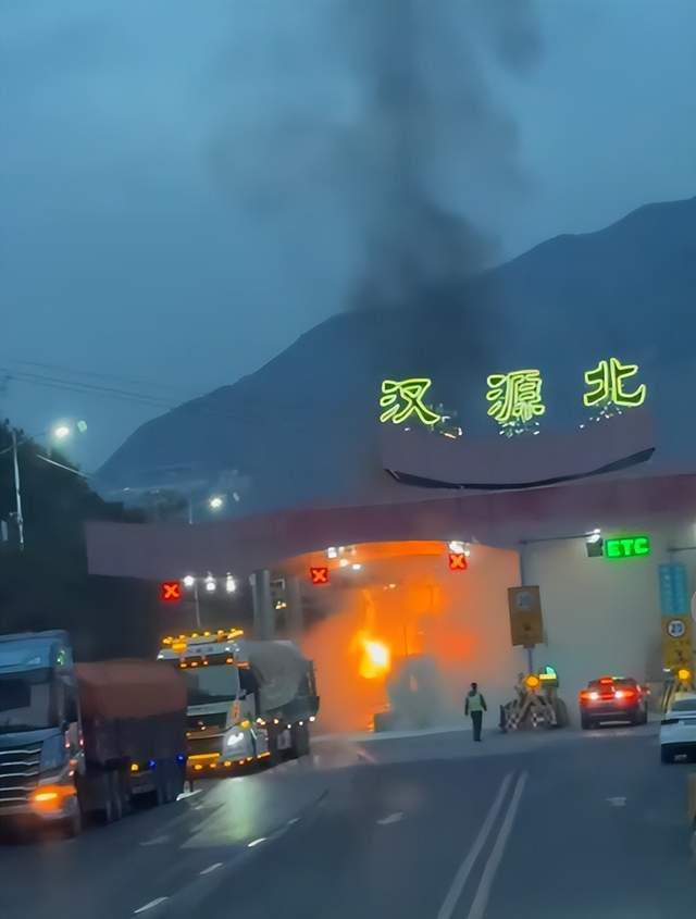 目击者介绍称,当时一辆大货车在汉源北收费站下道时突然起火,收费站工作人员及时疏散人员和车辆并拨打119,经消防奋力扑救,大火很快被扑灭。