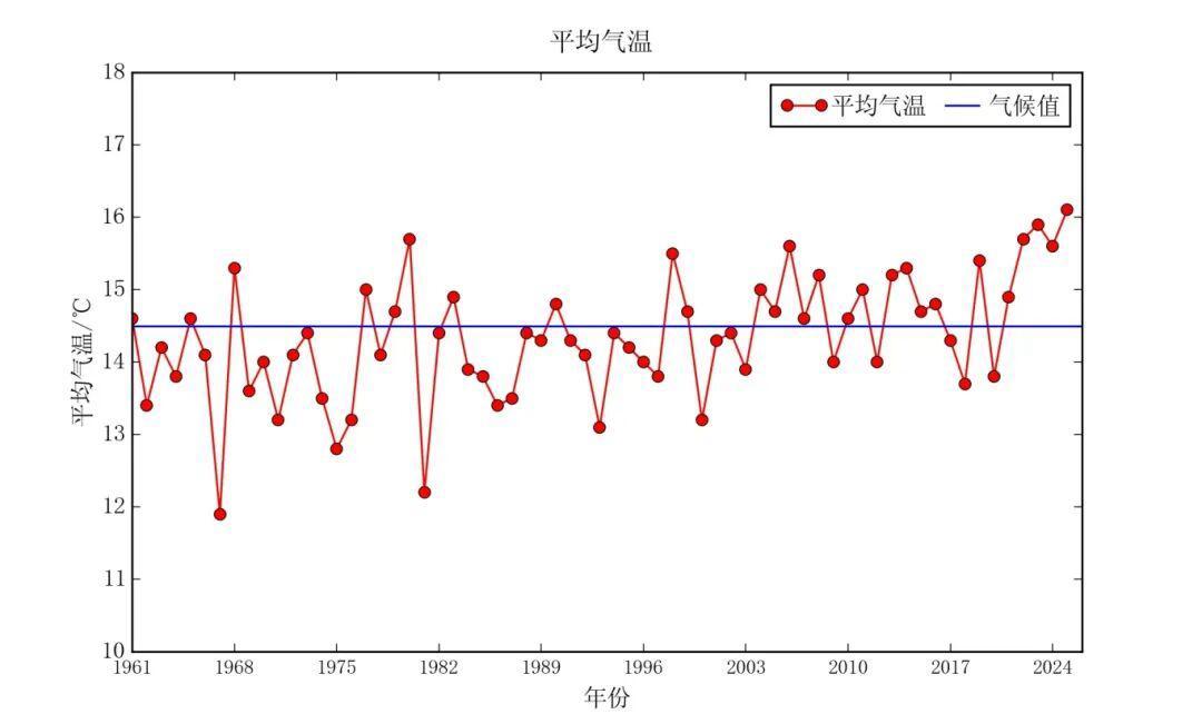 △1961年-2025年(10月1日-12月16日)同期气温变化时序图