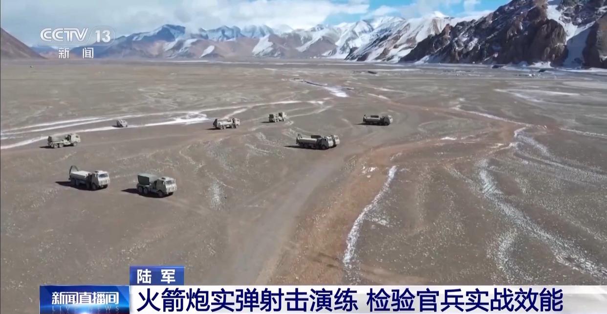 近日,新疆军区某部火箭炮分队在大漠戈壁展开火箭炮实弹射击演练,围绕指挥控制、快打快撤、火力覆盖等内容,检验火箭炮分队在高原高寒环境下全地域打击效能。
