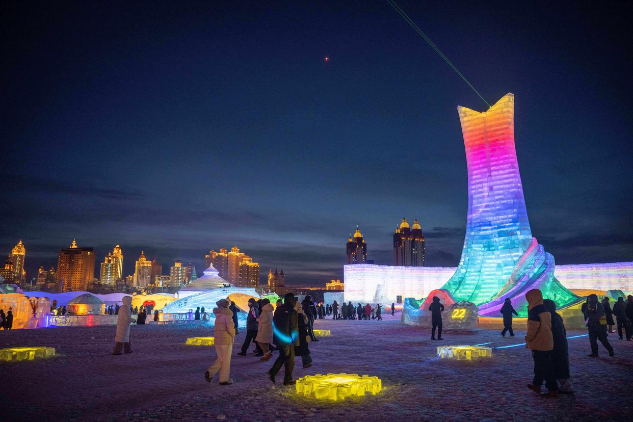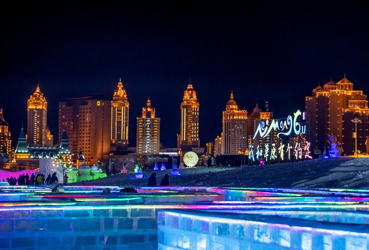 12月20日,第二十二届中国·满洲里中俄蒙国际冰雪节在内蒙古自治区满洲里市城中草原“冰雪芳华”主题乐园开幕。本届冰雪节打造的“冰雪芳华”主题乐园占地12.8万平方米,通过冰雪雕塑、互动体验和情景营造,再现满洲里从边陲驿站到国际口岸的发展历程,吸引市民和游客前来参观游览。