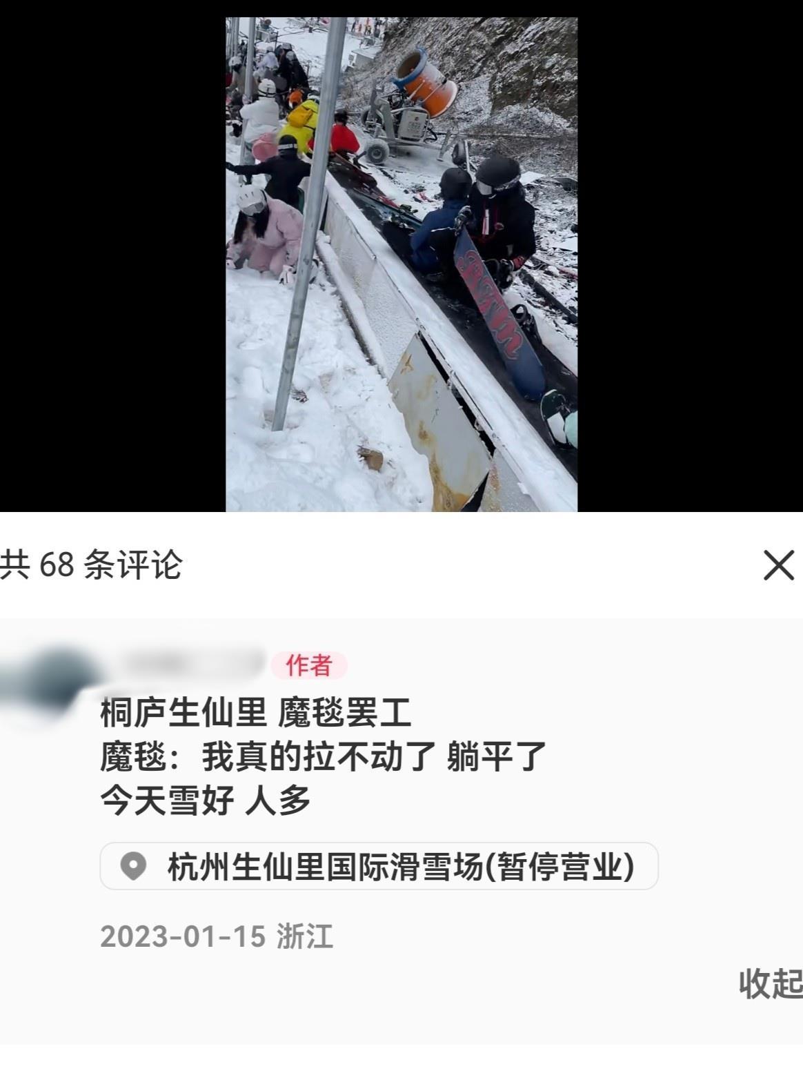12月20日,多名网友在社交网站反映,杭州市桐庐县合村乡生仙里滑雪场的传送魔毯突发故障。