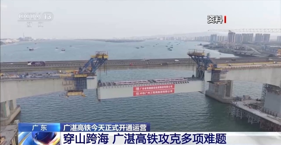 总台记者王思元介绍,广湛高铁线路全长401公里,设计时速350公里,是连接北部湾城市群与粤港澳大湾区的重要通道。
