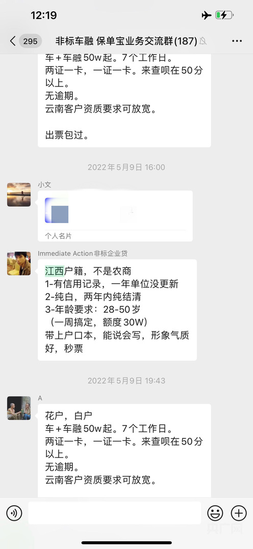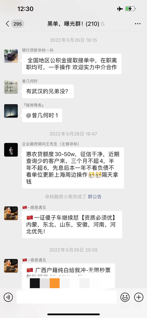 中介在群里招揽职业背债人的信息(央广网发 警方供图)