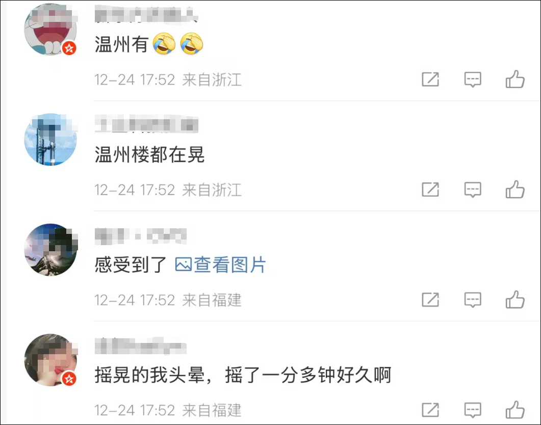 温州、福州、厦门等多地网友表示有震感,“衣架都在晃”。