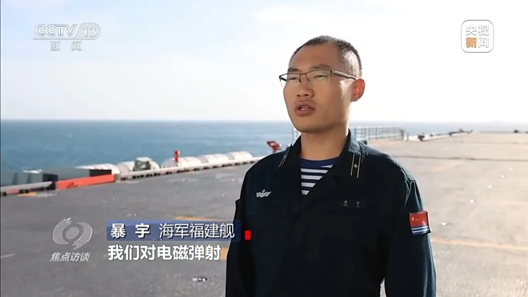 海军福建舰 暴宇:通过不断开展实装训练,我们对电磁弹射、阻拦系统的性能底数掌握更加精准,对各型装备的操作使用更加熟练,各战位与舰载机飞行员之间协同配合更加默契。