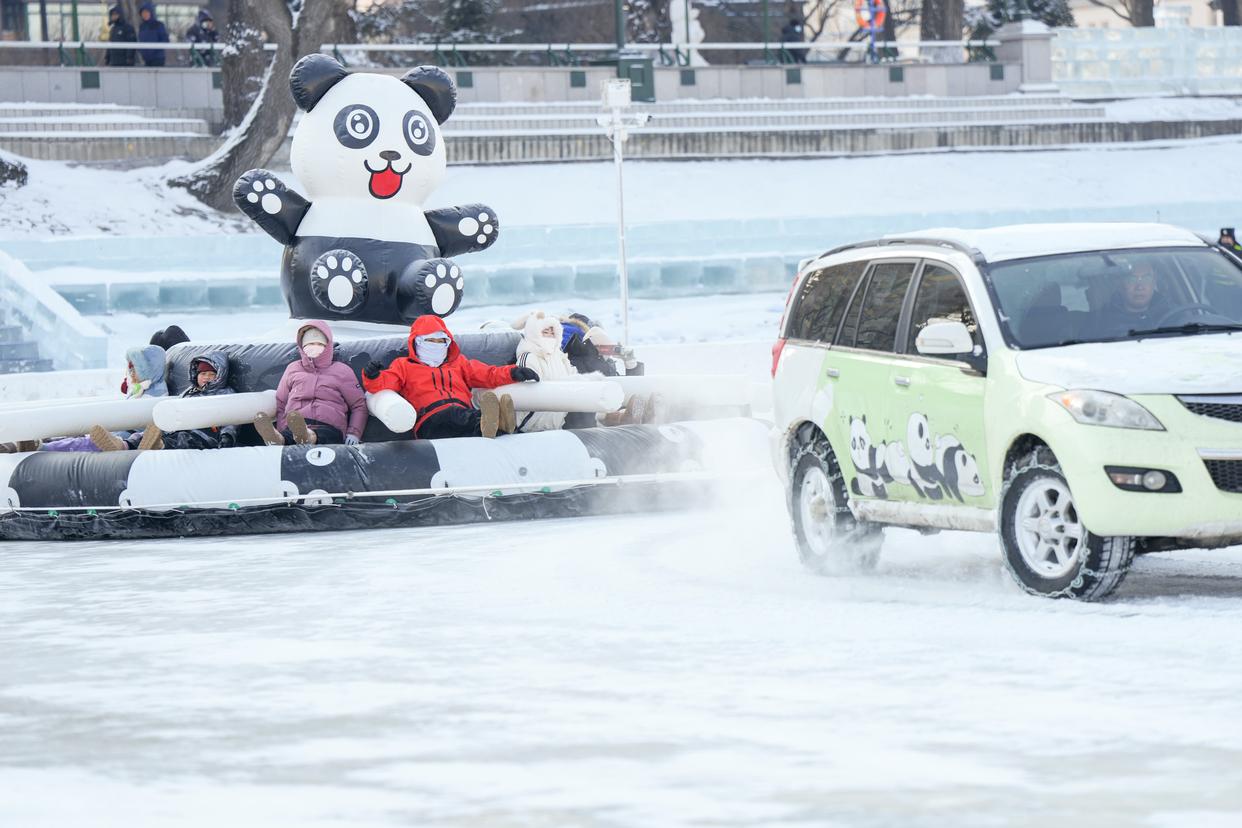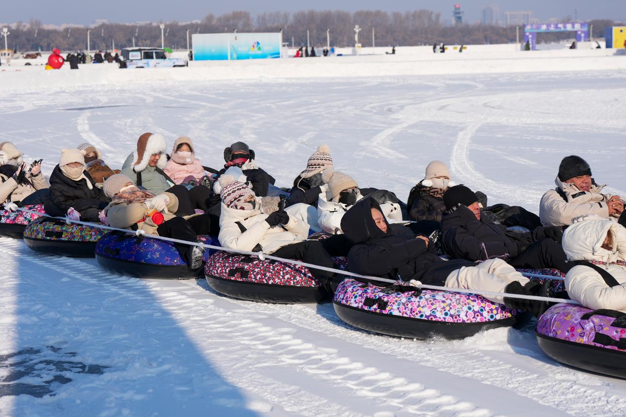 12月25日,人们在2026第八届哈尔滨松花江冰雪嘉年华园区内体验冰雪娱乐项目。新华社记者 王松 摄