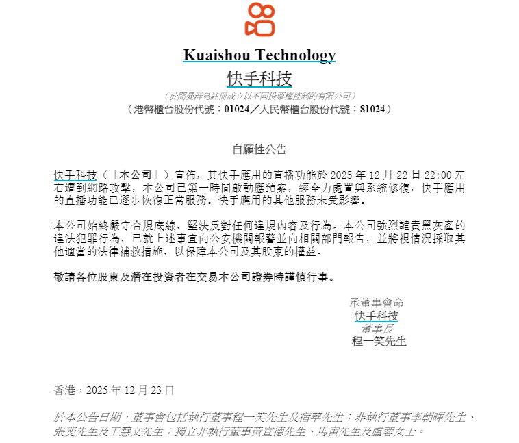 2.快手称遭攻击,多方回应[EB/OL].微信公众号“中国青年报”.2025-12-23.