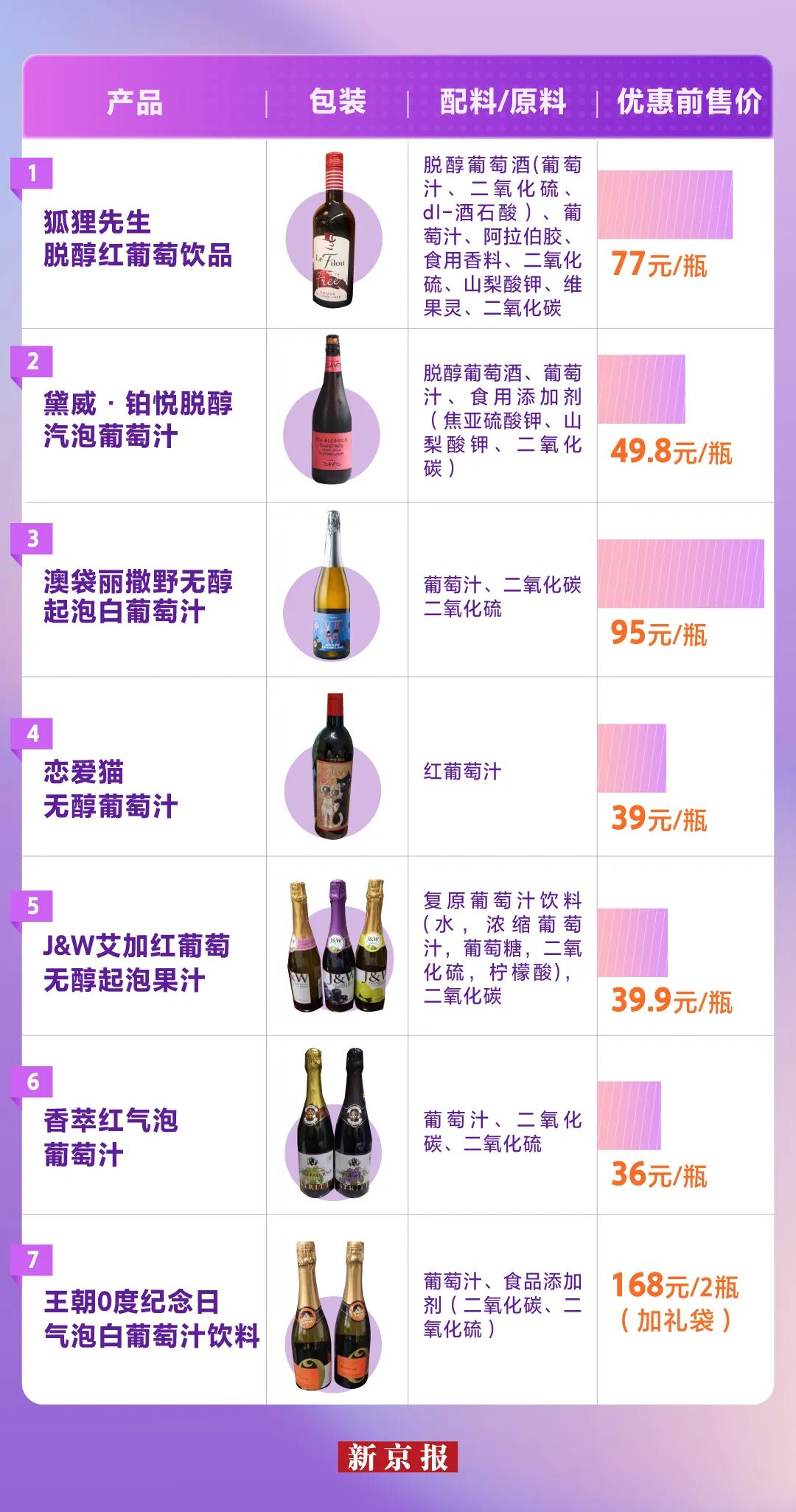 ▲7款无酒精葡萄汁类产品信息。制图/张瑶