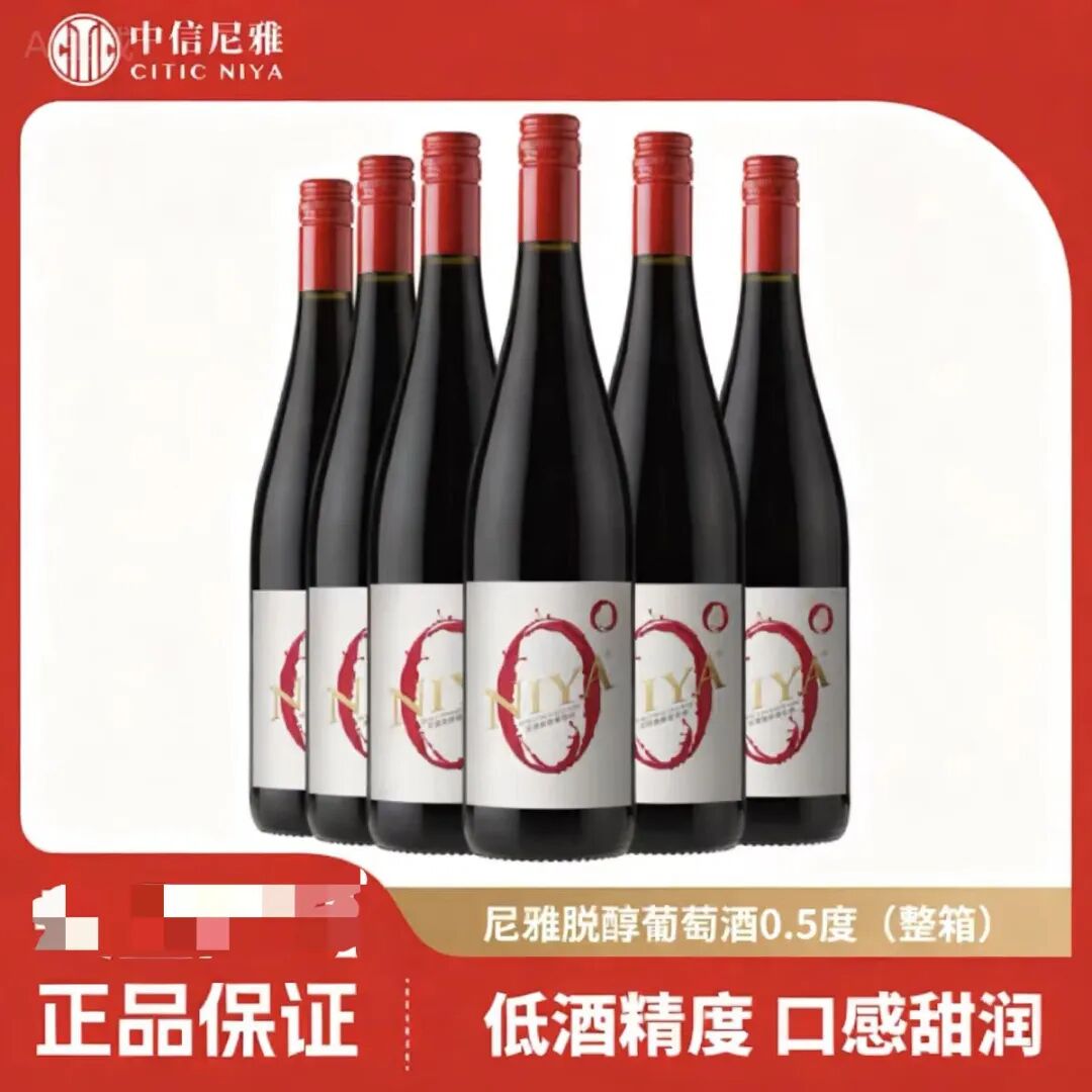 无独有偶,尼雅酒类旗舰店销售、宣称中信尼雅旗下的一款“尼雅脱醇葡萄酒”,产品包装正面同样有一个形似“0°”的红色图形,但产品实际酒精度为0.5%vol。对于产品包装为何有形似“0°”的图形,客服称“页面包装就是这样的”,并坦言该产品饮用后不建议开车。