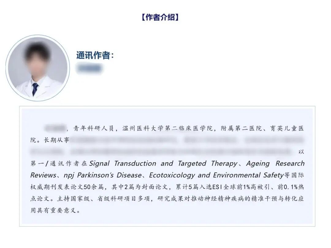 根据洪某某发表过论文的国际期刊Environmental Chemistry and Ecotoxicology微信宣传公众号“环境化学与生态毒理ENCECO”发布的内容,洪某某自我介绍:来自温州医科大学第二临床医学院,附属第二医院、育英儿童医院,系青年科研人员,以第一/通讯作者身份在多个国际权威期刊发表论文50余篇,其中2篇为封面论文,累计5篇入选ESI全球前1%高被引、前0.1%热点论文。洪某某还自称,主持国家级、省级科研项目多项,研究成果对推动神经精神疾病的精准干预与转化应用具有重要意义。