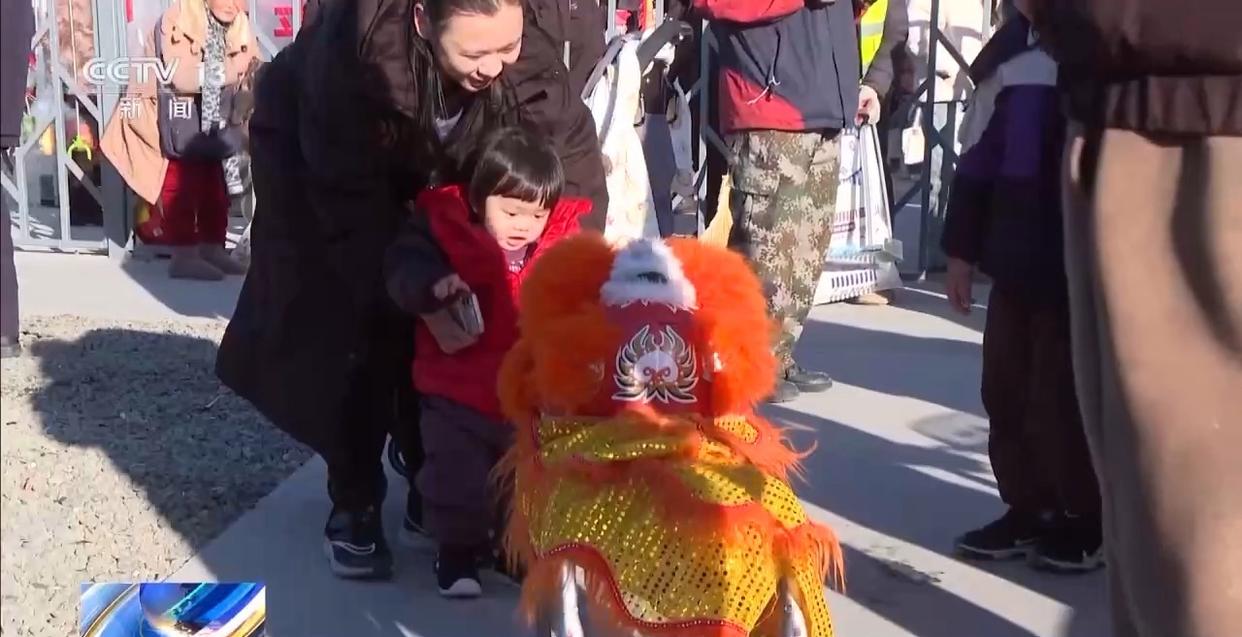 大集特意设置了舞台,各类民俗表演、花式杂技引得现场观众阵阵喝彩。充满未来感的机械狮子狗与智能机器人加入传统舞蹈表演,给大集增添了科技元素。