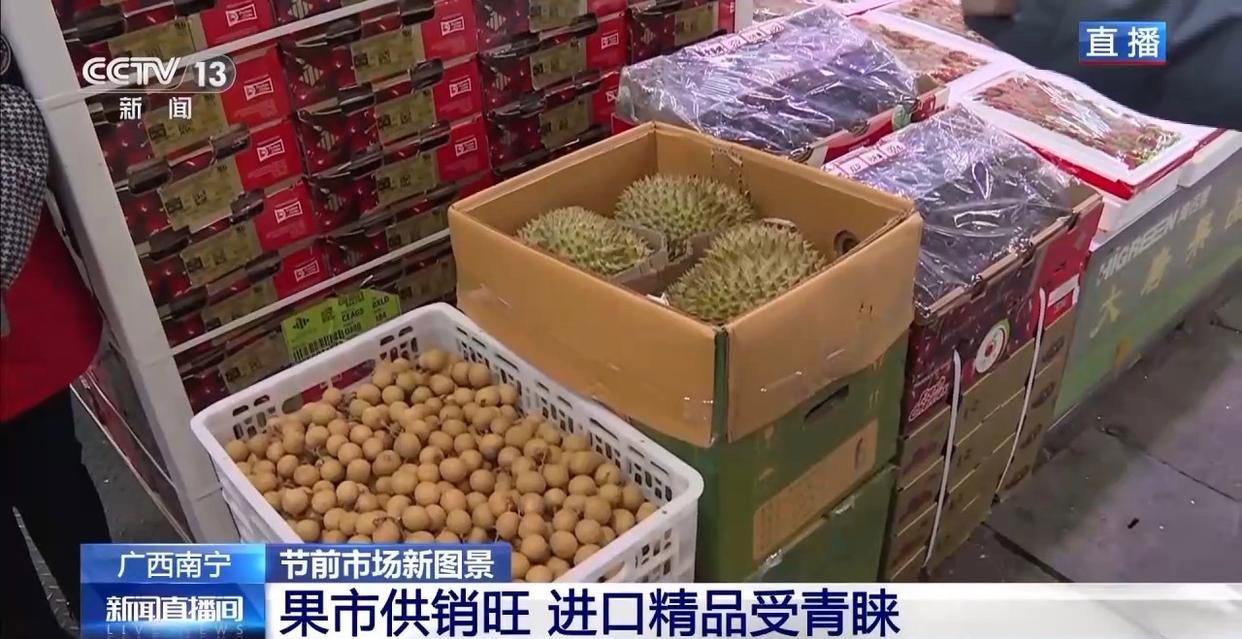 总台记者孔祥新介绍,在精品果区可以更加集中、直观地看到当下最热销的果品。这里既是面向南宁本地经销商的批发枢纽,也是许多消费者直接选购年节水果的热门场所。