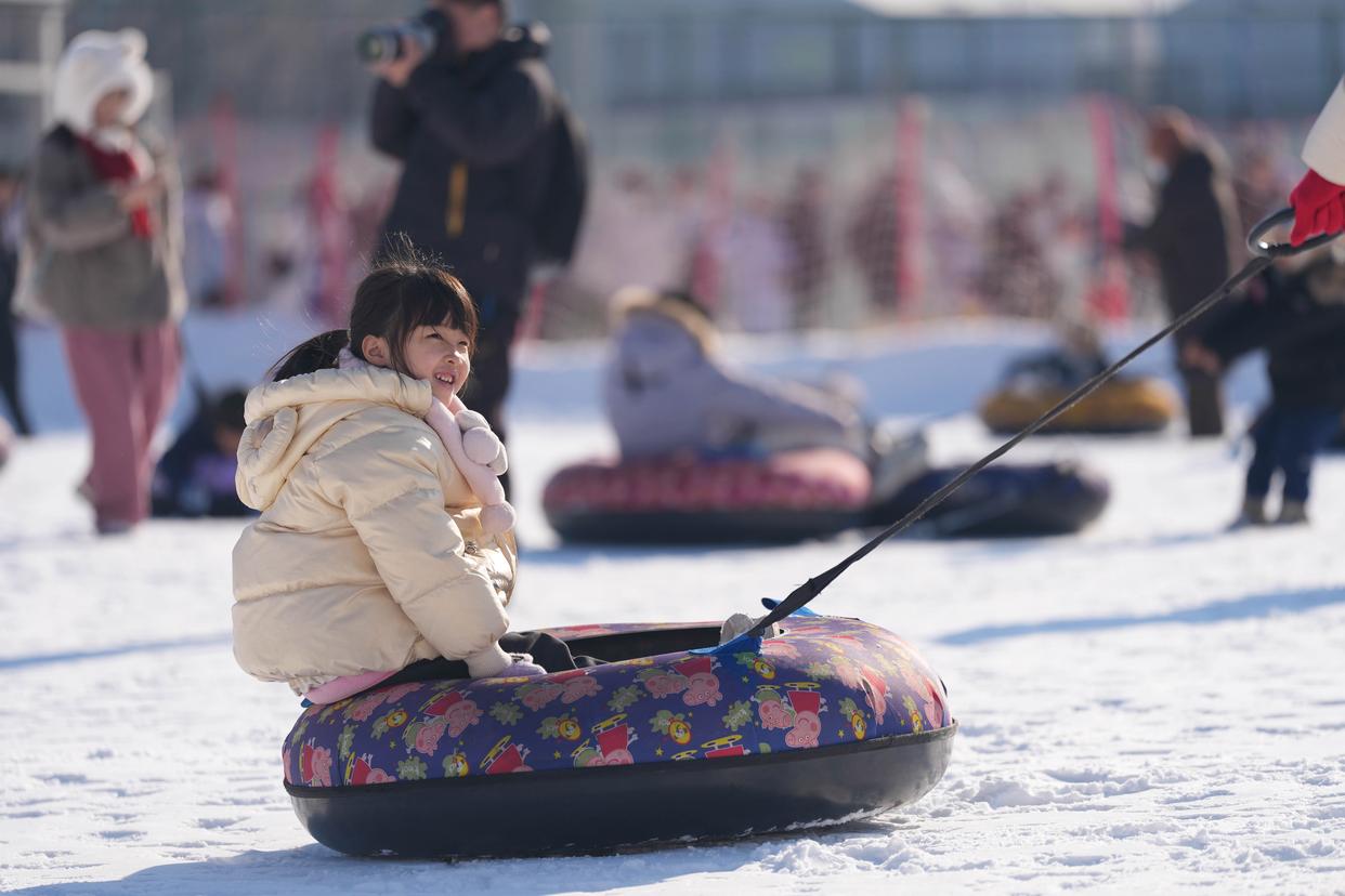 12月27日,游客在鸟巢欢乐冰雪季室外场地游玩。新华社记者 谢晗 摄
