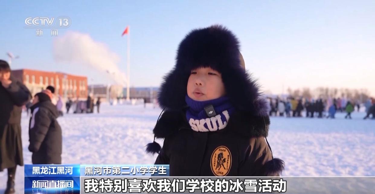 黑河市第二小学学生:我特别喜欢我们学校的冰雪活动,拉雪圈、打冰壶,还有大课间的兔子舞也超级好玩。