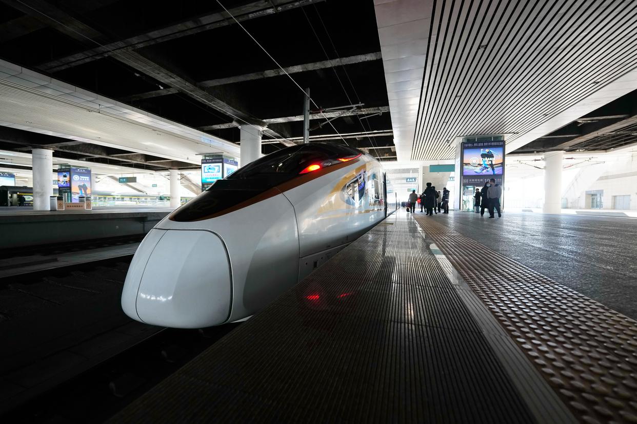 12月30日,从唐山开往北京通州的首发列车停靠在唐山站站台。新华社发(董军 摄)