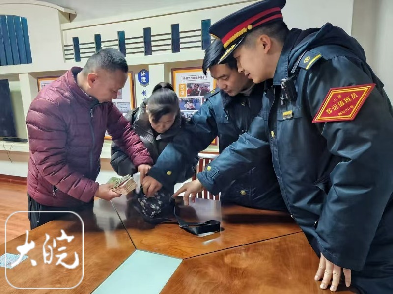 周磊快速将二人送至候车室服务台,还指导娄先生拨打12306客服电话,及时登记遗失物品相关信息。到达服务台,客运值班员王琦了解情况后,快速查询并联系上K738次列车长,说明老人遗失钱款的具体铺位,恳请列车长帮忙查找。经过等待后,终于传来列车长的好消息:“找到了!”经现场清点,包内现金17836.2元。列车长还告知,会将钱款通过前方宿州站返程的列车,连夜送回蚌埠站。