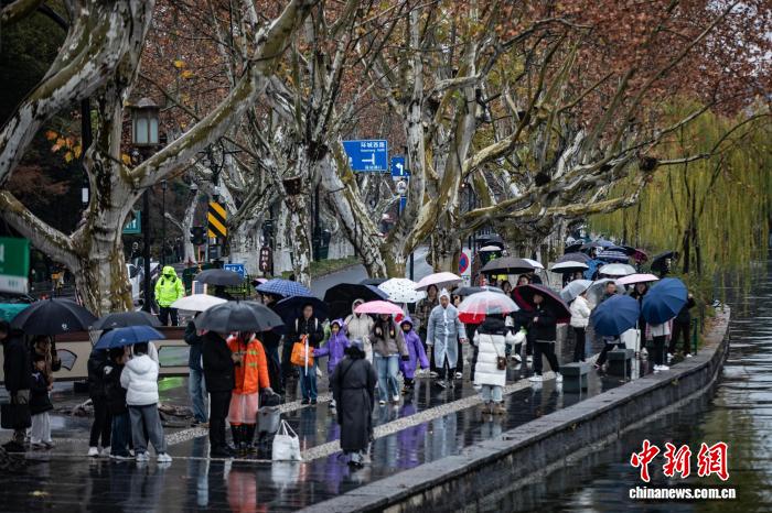 1月1日,西湖边游人如织。新年伊始,2026年第一场烟雨入江南,杭州西湖风景如画。 中新社 记者 吴君毅 摄