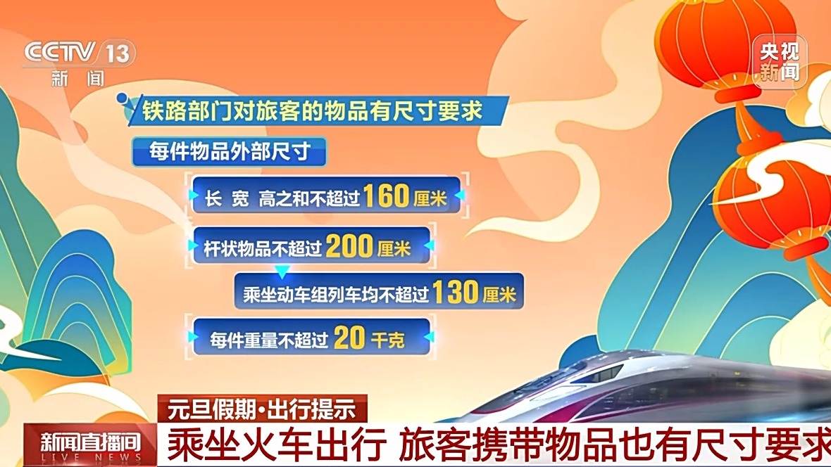 旅客带着大包小包坐火车出行时还需要注意,铁路部门对旅客的物品有尺寸要求:每件物品外部尺寸长、宽、高之和不超过160厘米,杆状物品不超过200厘米;但乘坐动车组列车均不超过130厘米;每件重量不超过20千克。平衡车、滑行器等轮式代步工具须使用硬质包装物妥善包装。乘坐飞机出行,如果携带雪具要注意查看所乘坐的航空公司的托运规定。