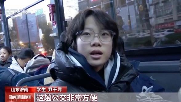 学生 尹千寻:我每天7点准时下楼,7时5分就能坐上这个学生的定制公交。在7点15分的时候就能准时到达学校,这趟公交非常方便。