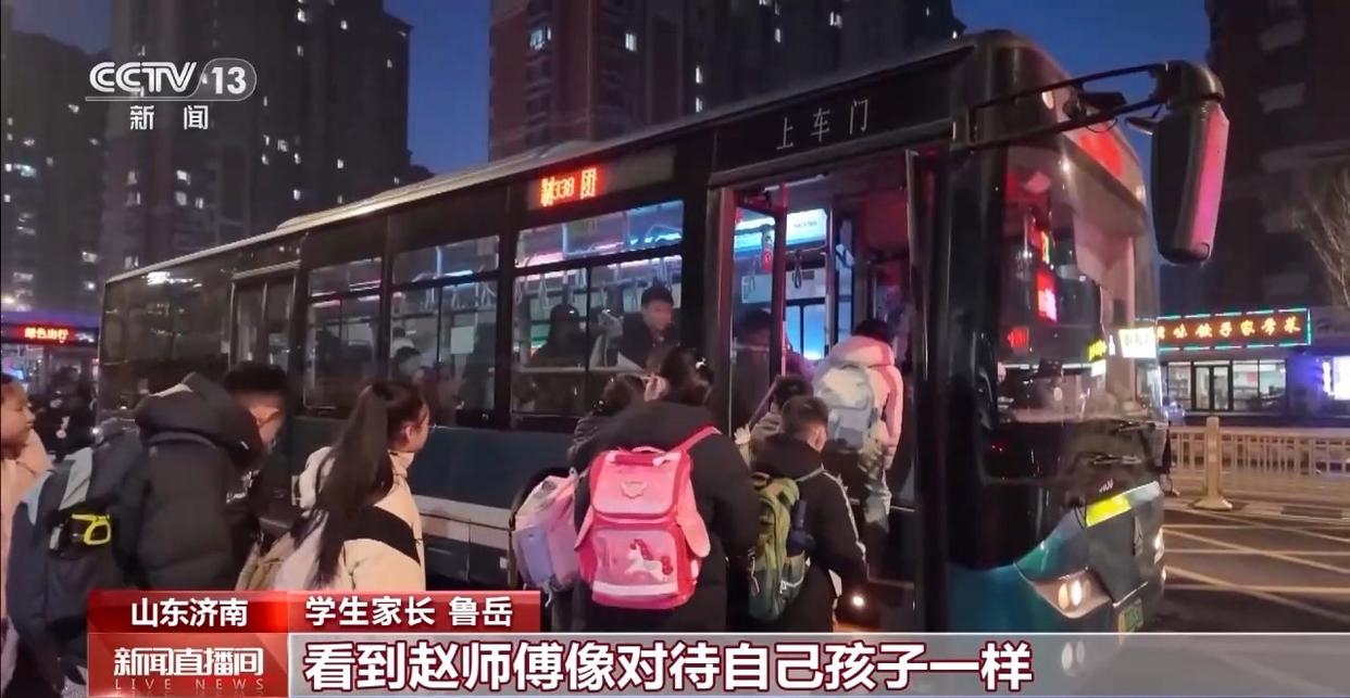 学生家长 鲁岳:我孩子上五年级了,上下学都是坐这趟车,看到赵师傅像对待自己孩子一样,心里也很踏实。