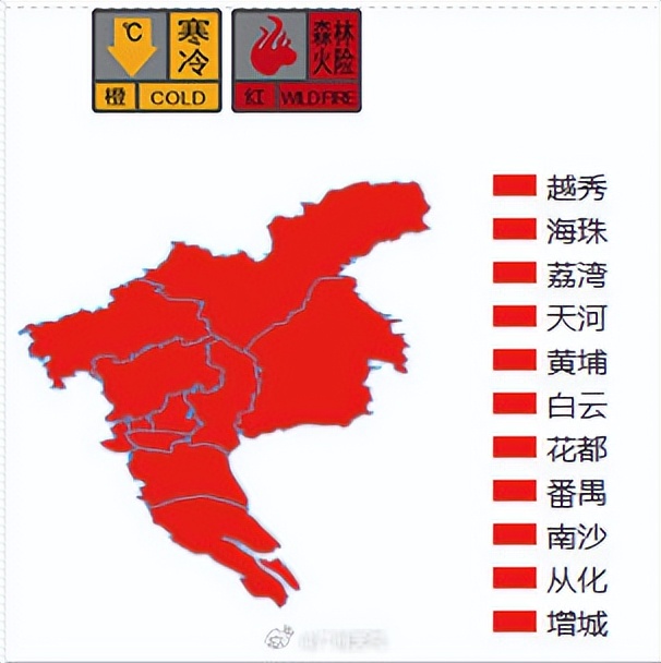 广州全市各区森林火险红色预警