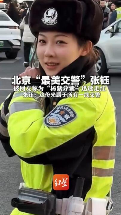 据悉,这位26岁的女警张钰是北京西城交通支队女子铁骑队的一员,因其执勤时的亲切笑容与干练形象神似演员杨紫而引发关注,被网友称为“最美交警”,不少网友留言表示:“警服就是她最美的装扮!”