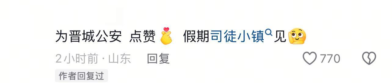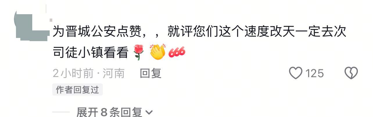 晋城公安所发布上述视频引发网友热议,至4日20时许已有4.2万点赞,1.3万条评论。有网友留言“改天一定去司徒小镇看看”“假期司徒小镇见”,为警方的反应速度和景区的赔付力度点赞。