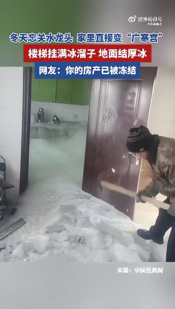 东北一户人家忘关水龙头,家里直接变广寒宫,网友:这真的是冻结固定资产