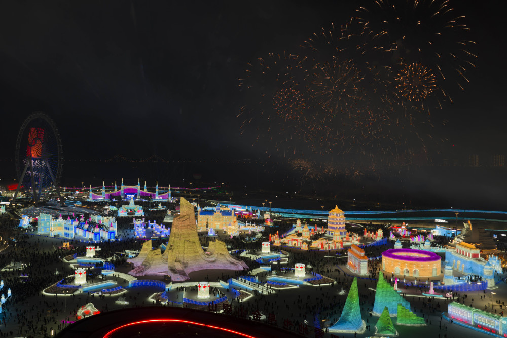 1月5日17时许,松花江北岸,夜空被璀璨的烟火点亮。在零下十几摄氏度的严寒中,第42届中国·哈尔滨国际冰雪节在哈尔滨冰雪大世界启幕!