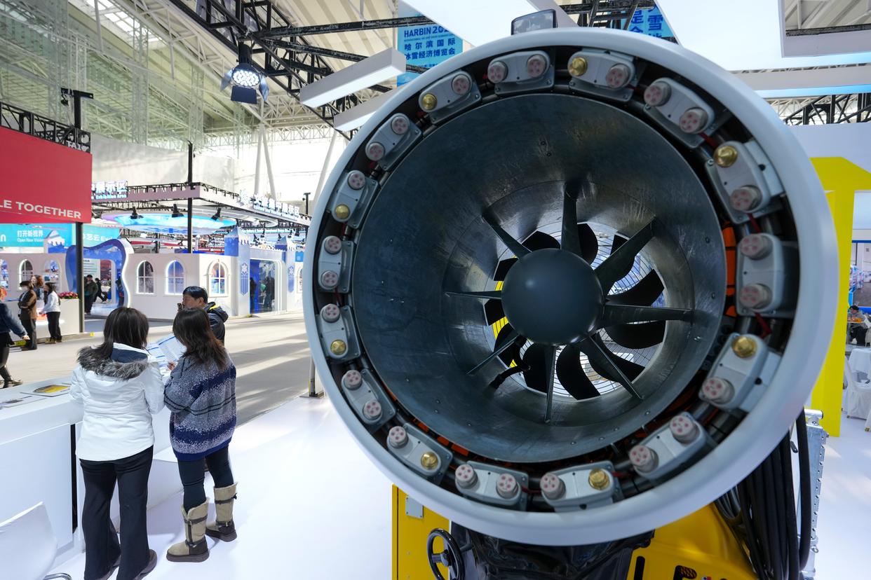 这是1月6日在2026哈尔滨国际冰雪经济博览会展会拍摄的造雪设备展品。新华社记者 王松 摄