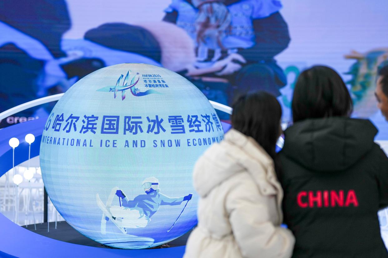 1月6日,参观者在2026哈尔滨国际冰雪经济博览会现场参观。新华社记者 张涛 摄