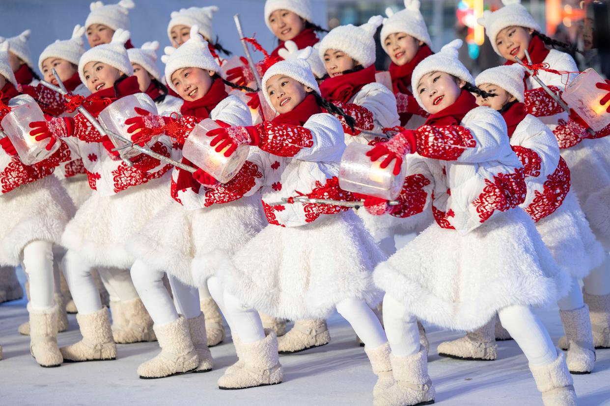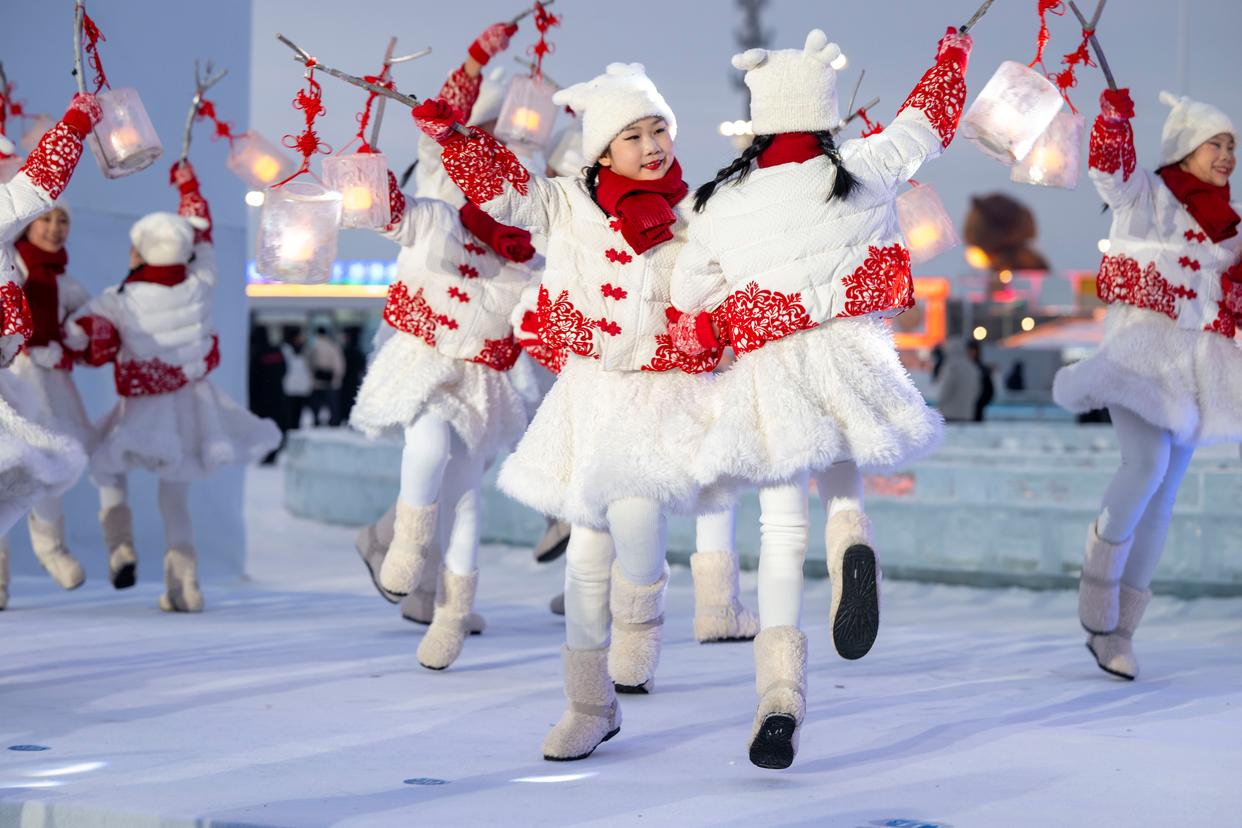 1月6日,演职人员在“世界市长对话·哈尔滨”活动启幕仪式上表演。新华社记者 张涛 摄