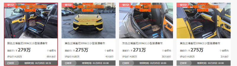 大皖新闻讯1月5日上午,京东司法拍卖平台一次性成功拍出四辆兰博基尼UrusS小型普通客车,且四辆车均归属于同一被执行人。此次拍卖引发广泛关注。