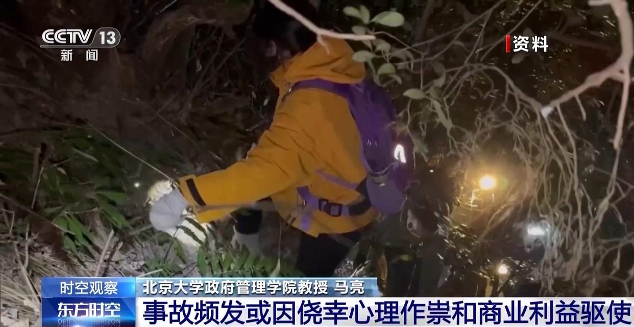 北京大学政府管理学院教授 马亮:这几年随着社交媒体的宣传和推广,以及一些商业操作,类似这样一些探险的活动越来越多,之所以会出现这么多的违规探险,有不少人是存在一种侥幸心理的,这样一种机会主义的做法不光让探险人员自身面临风险,也会让救援人员同样面临安全的威胁。